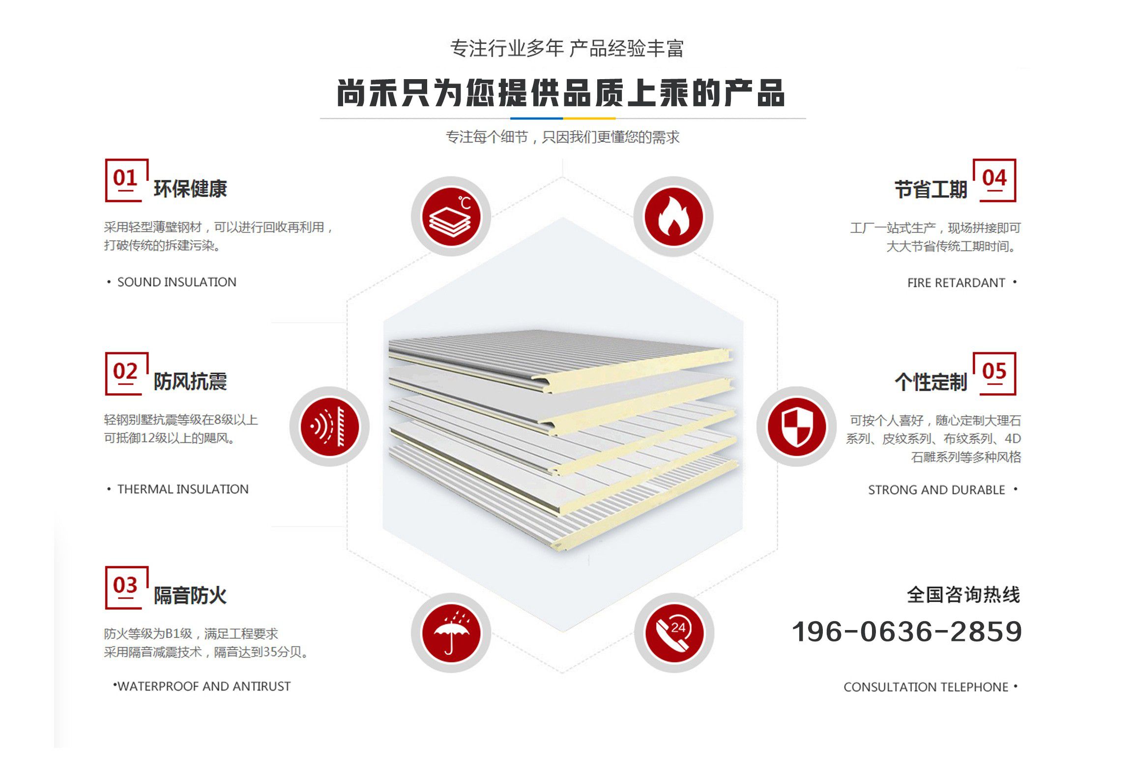 山東尚禾經(jīng)貿(mào)有限公司是集板材設(shè)計(jì)、研發(fā)、生產(chǎn)、施工、一體化的科技公司,并在同行業(yè)中率先通過(guò)了質(zhì)量、環(huán)境、安全管理體系認(rèn)證。公司2011年投入資金2000余萬(wàn)元引進(jìn)世界先進(jìn)的聚氨酯節(jié)能板連續(xù)生產(chǎn)線、意大利進(jìn)口發(fā)泡系統(tǒng),采用六組份在線自動(dòng)操作混合澆注技術(shù),在線一次性完成社會(huì)配料中心或工廠的配比混合工藝,并可以根據(jù)溫度在線自動(dòng)調(diào)整,從而生產(chǎn)處與眾不同的高強(qiáng)度、節(jié)能型、綠色環(huán)保的聚氨酯夾芯板。(其使用年限高于同行業(yè)其他品牌5-10年) 公司主要經(jīng)營(yíng)范圍包括聚氨酯夾芯板,PU夾芯板,冷庫(kù)板,潔凈板,聚氨酯冷庫(kù)板,冷庫(kù)保溫板的設(shè)計(jì)、生產(chǎn)、銷(xiāo)售、技術(shù)指導(dǎo)、安裝及一體、以及進(jìn)出口業(yè)務(wù),是中部六省最大的綠色節(jié)能建材生產(chǎn)基地。聚氨酯夾芯板年產(chǎn)200萬(wàn)平方米、PU夾芯板、冷庫(kù)保溫板500萬(wàn)平方米、鏈整產(chǎn)業(yè)綜合實(shí)力,開(kāi)創(chuàng)了六省至中西部創(chuàng)新型中小名企總部基地,并將著力推進(jìn)中國(guó)中西部地區(qū)集成房屋住宅產(chǎn)業(yè)化發(fā)展進(jìn)程。 科技創(chuàng)新、節(jié)能典范。千萬(wàn)間始終秉承“誠(chéng)信、合作”的企業(yè)文化精髓,長(zhǎng)期致力于鋼板材結(jié)構(gòu)節(jié)能建筑產(chǎn)業(yè),愿與社會(huì)各界攜手合作,共鑄綠色、環(huán)保美好未來(lái)。 產(chǎn)品具有良好的絕熱、阻燃、隔音、環(huán)保、耐久性能,可廣泛應(yīng)用于工業(yè)、商用建筑內(nèi)外墻、以及民用建筑外墻保溫、空調(diào)通風(fēng)系統(tǒng)、專(zhuān)用防火保溫門(mén)等領(lǐng)域。 我們始終秉承...